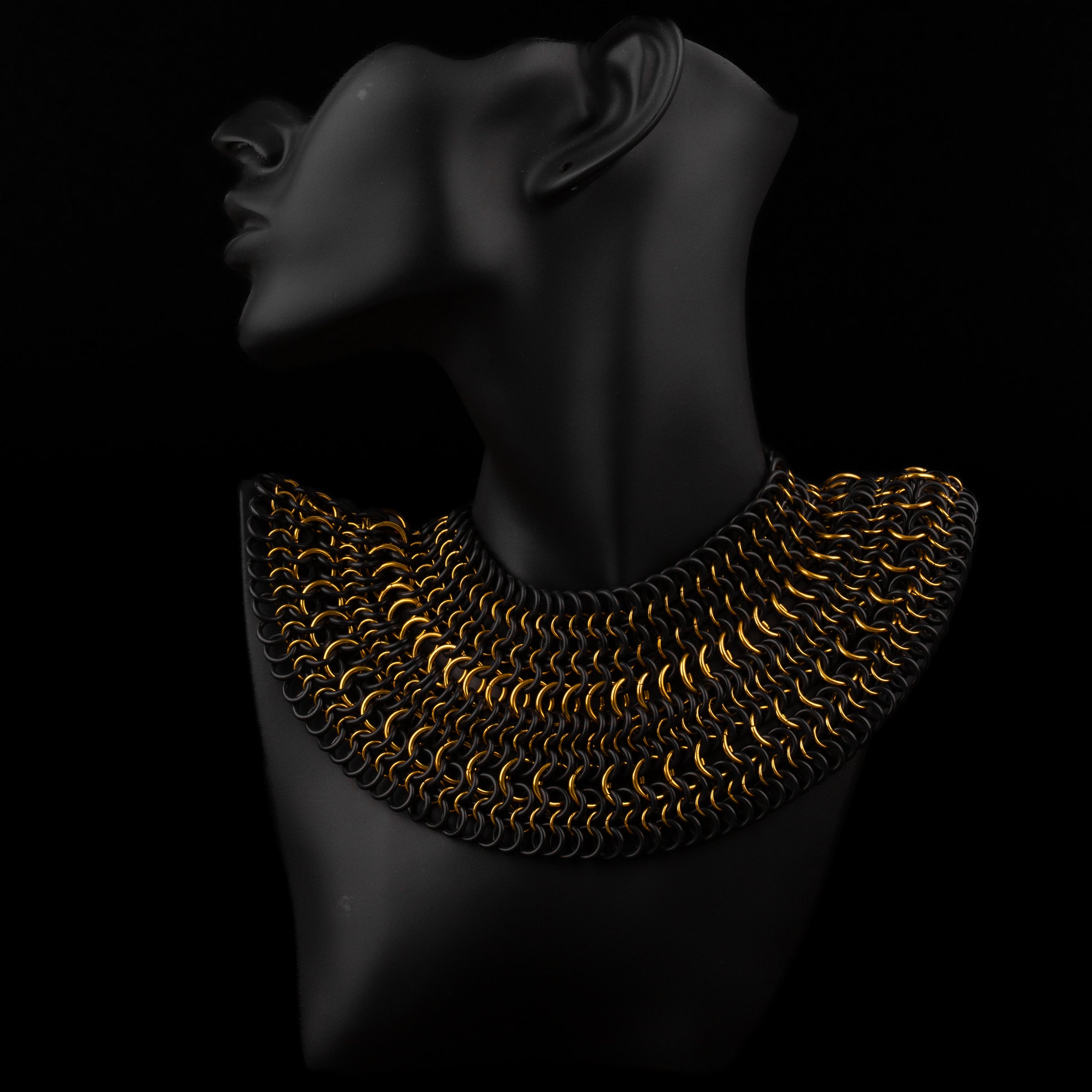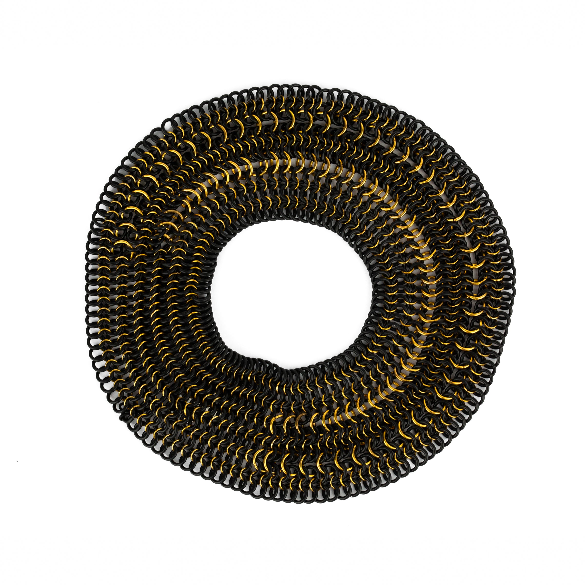 Elastic mesh necklace, hand-woven with gold or silver plated rings, combined with rubber bands.
