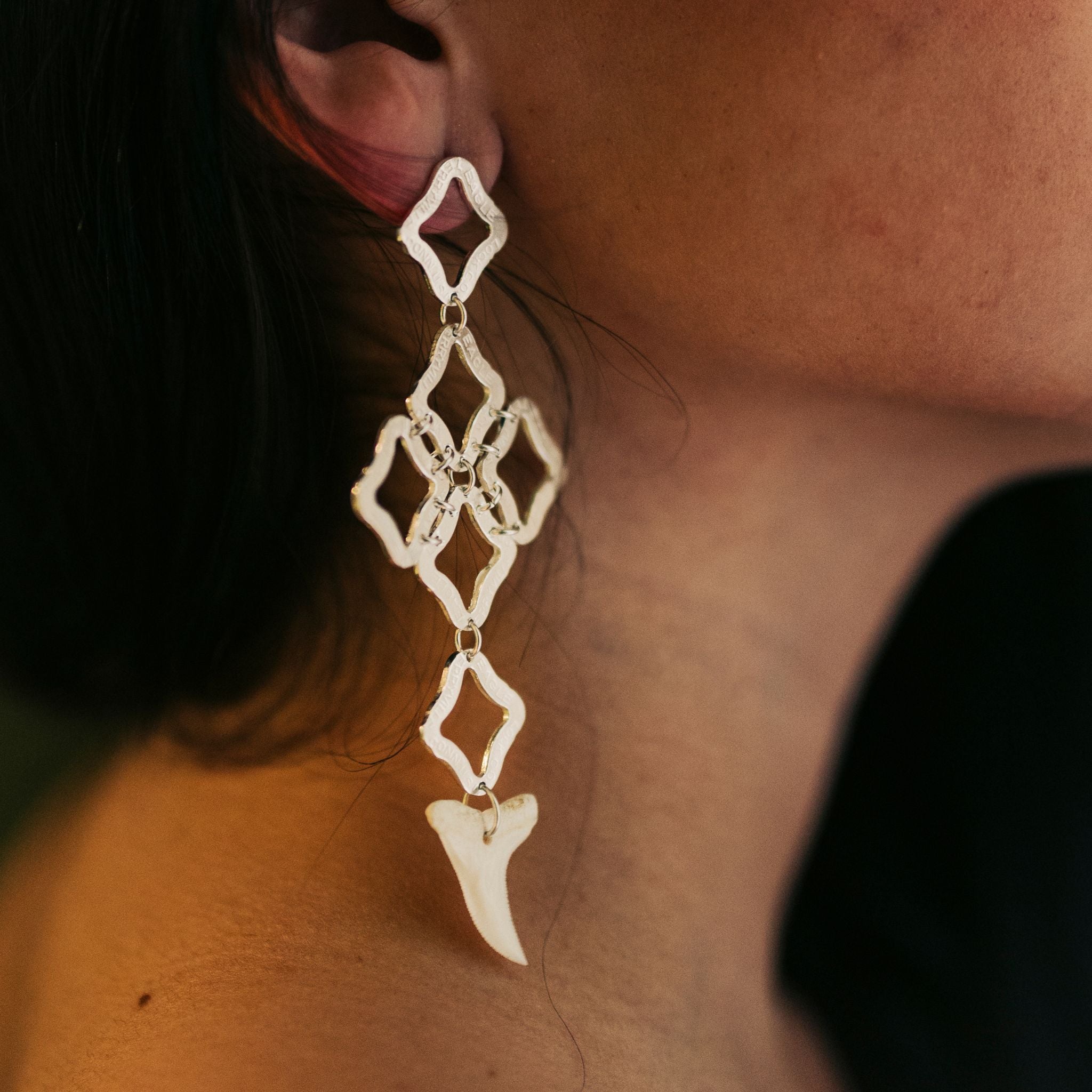 Gold Plated Silver Rhombus Earrings With Shark Teeth
