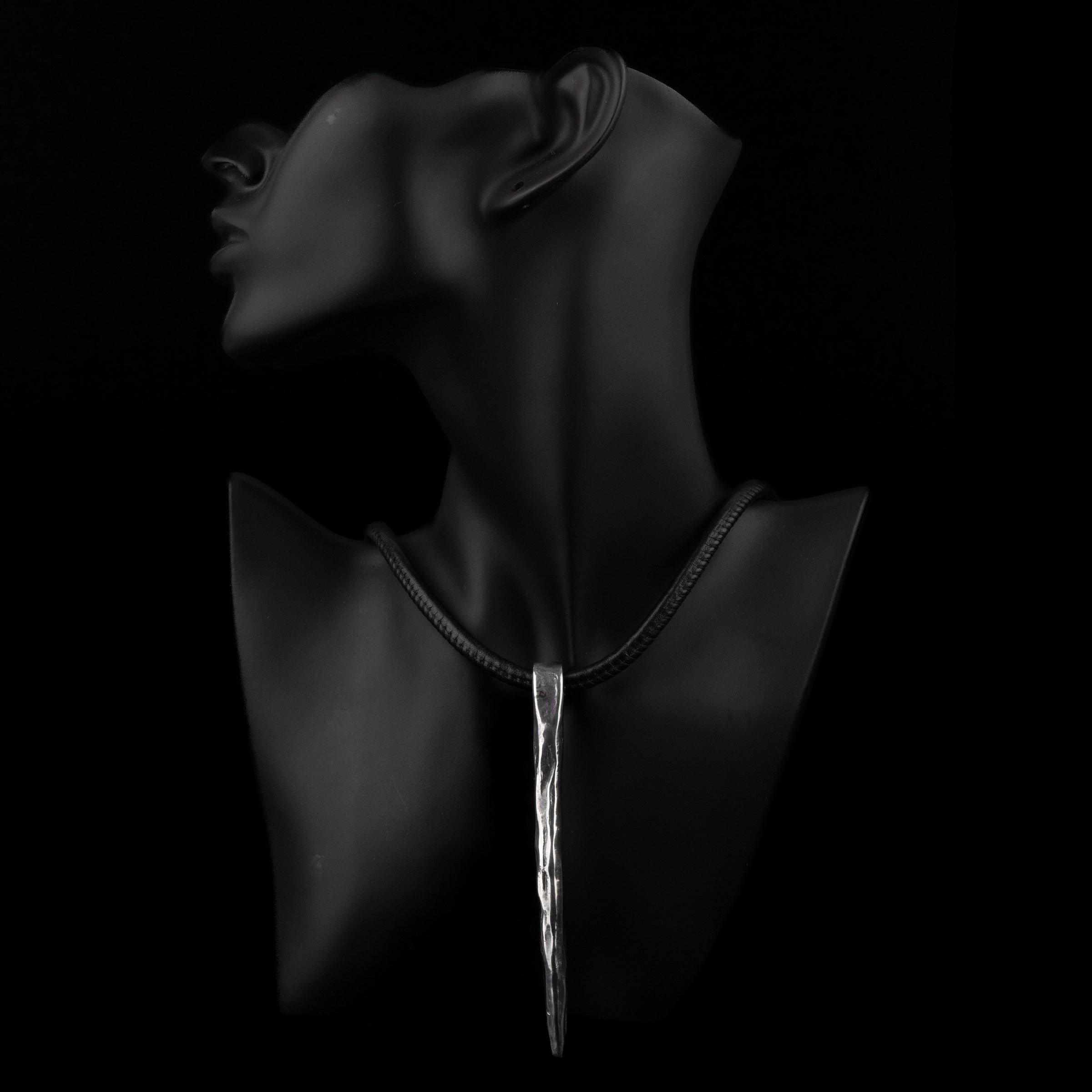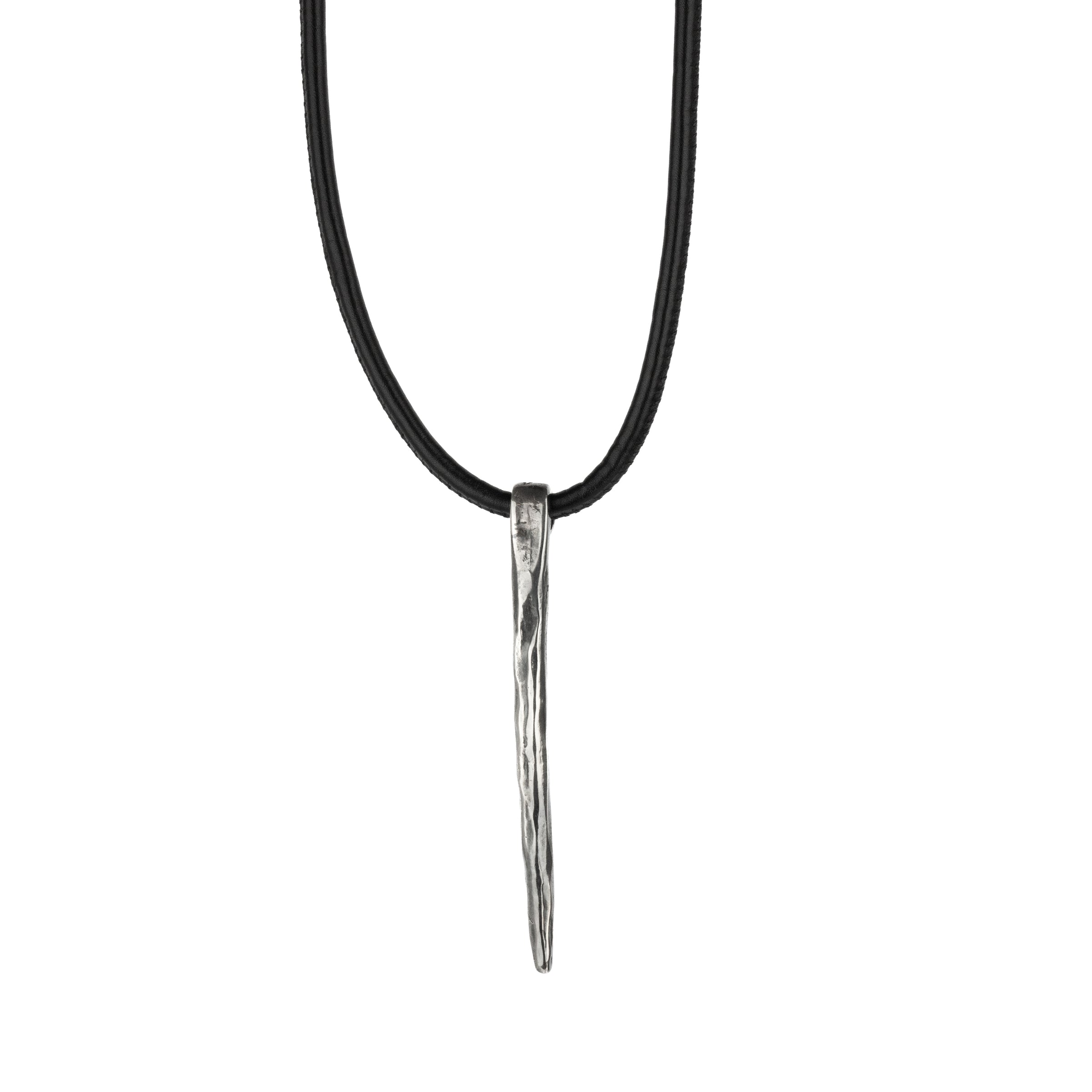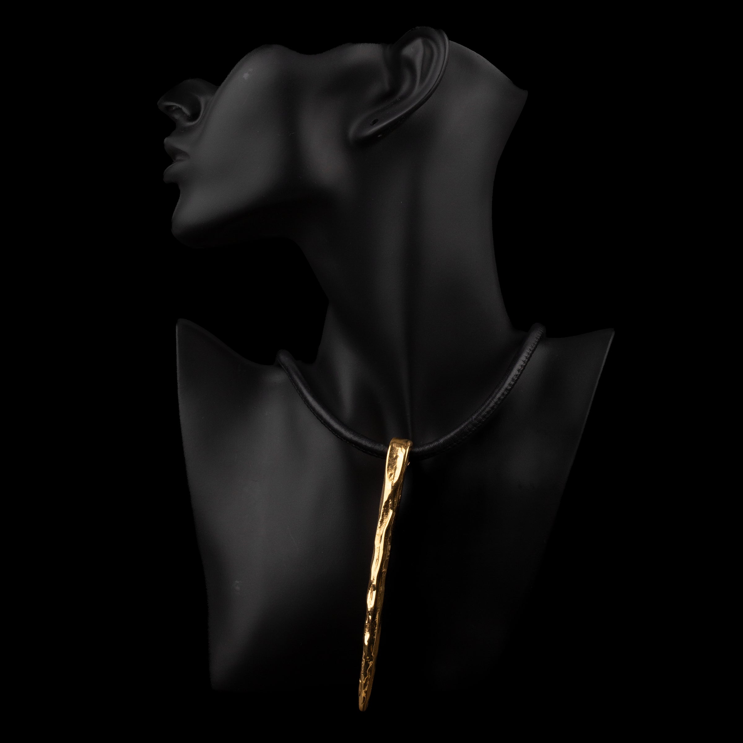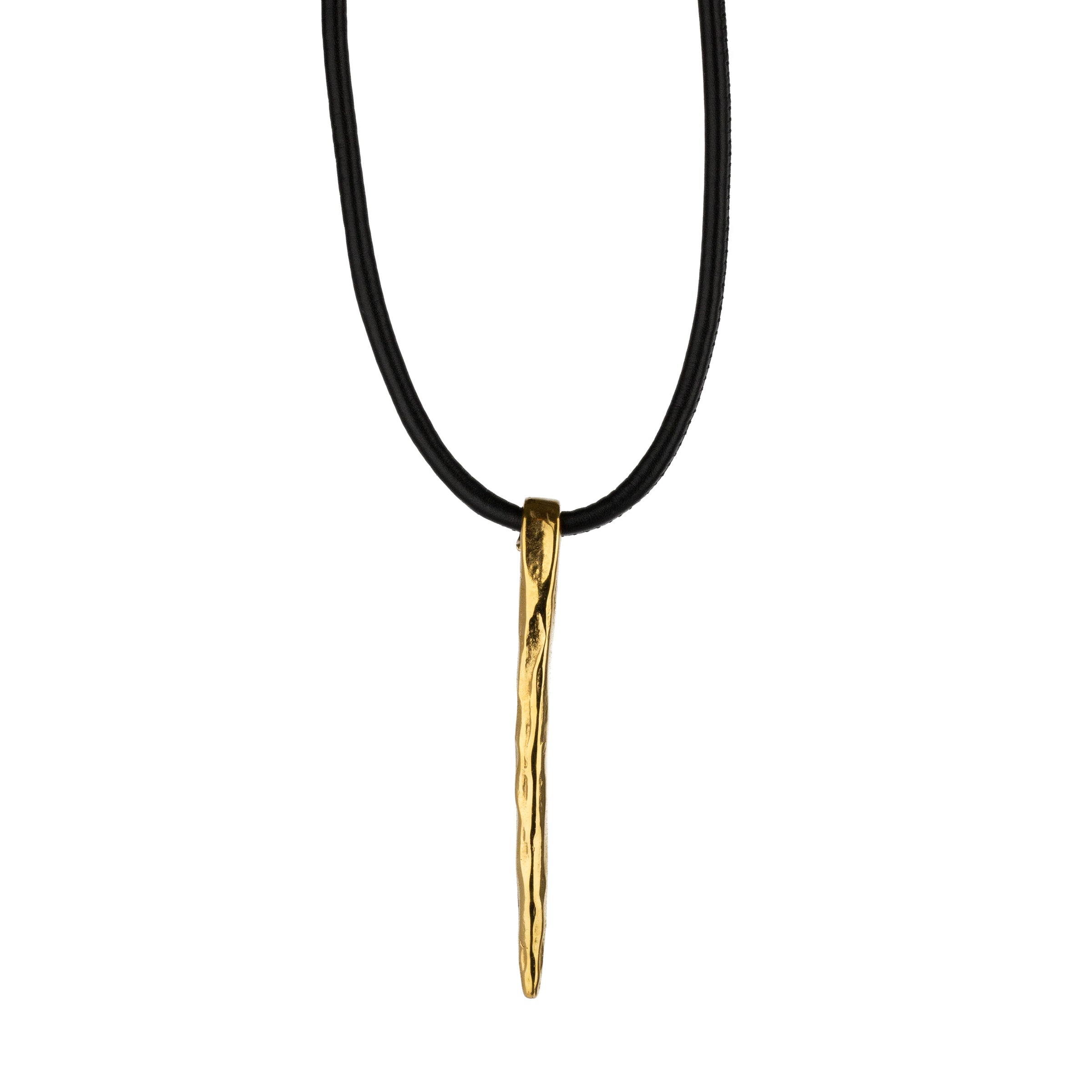 Collar de cuero con cierre magnético y colgante bañado en oro, plata o rodio (según la variante seleccionada).
