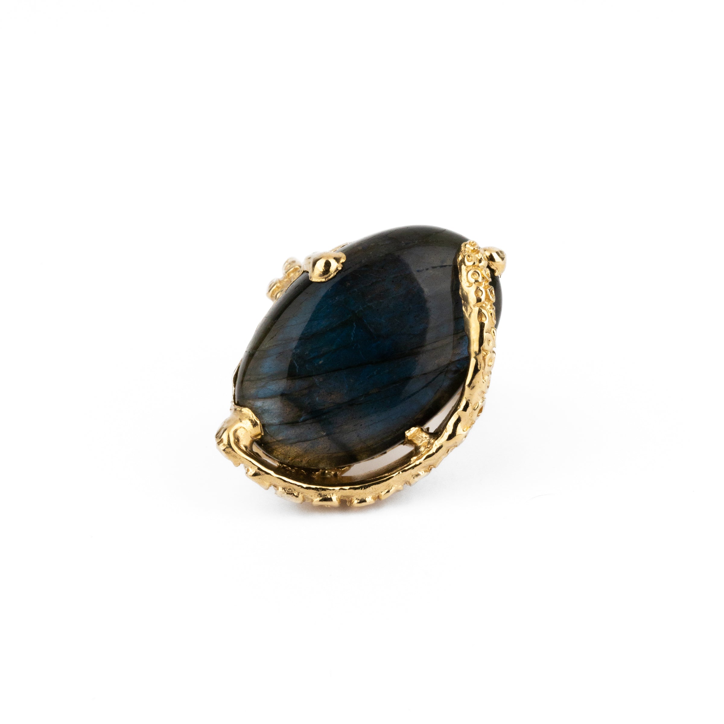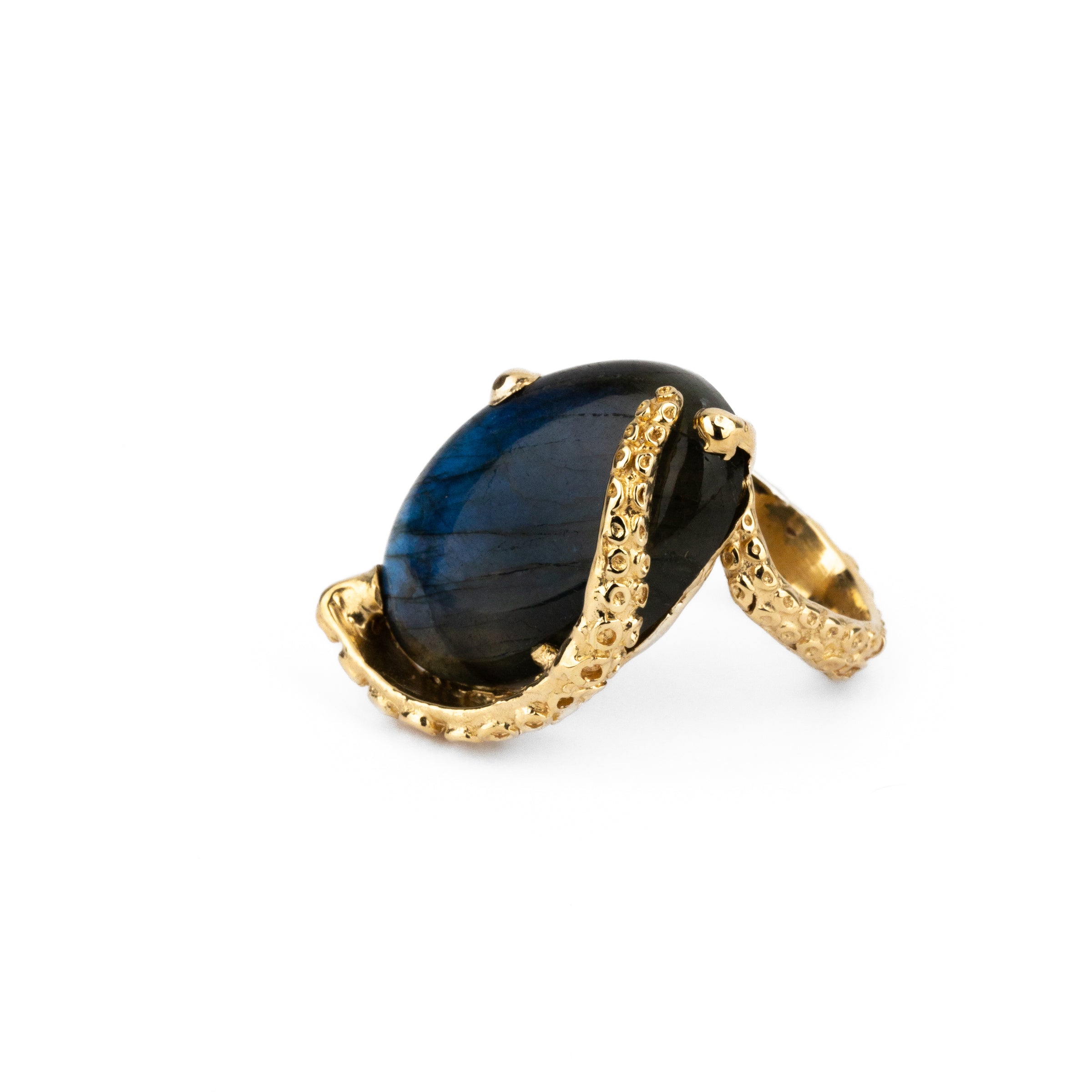 Anillo de goma con pieza bañada oro o plata (según la variante seleccionada).