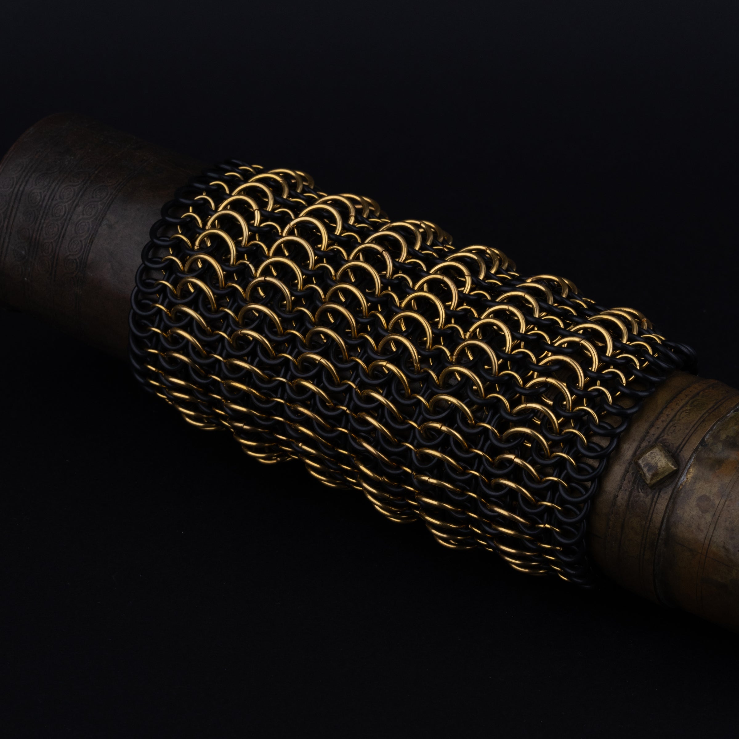 Elastic mesh bracelet, hand-woven with gold or silver plated rings, combined with rubber bands.