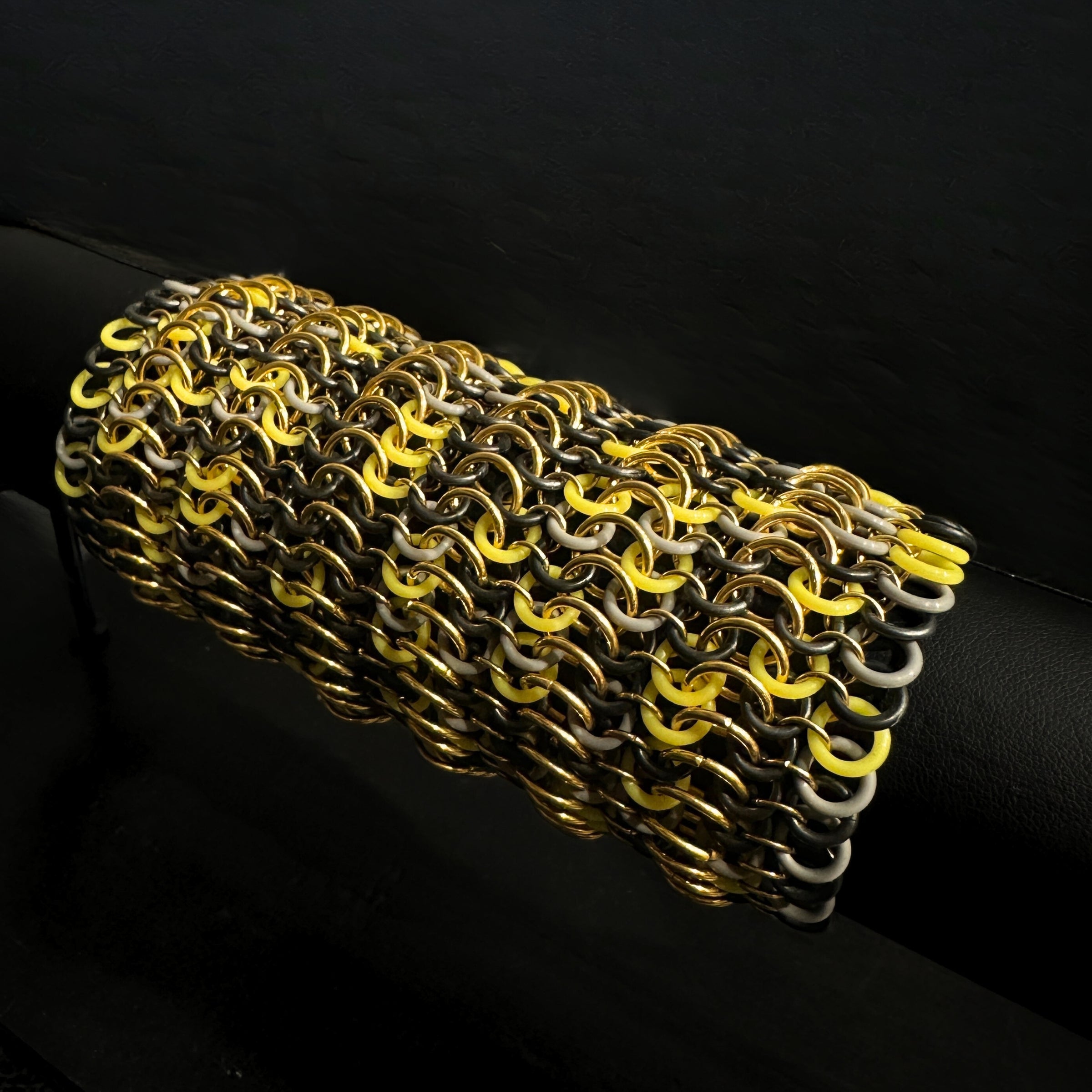 Each ring is woven individually. The mesh is very durable and does not lose elasticity over time. Keep in mind that saltwater is not suitable for any material that is soaked.