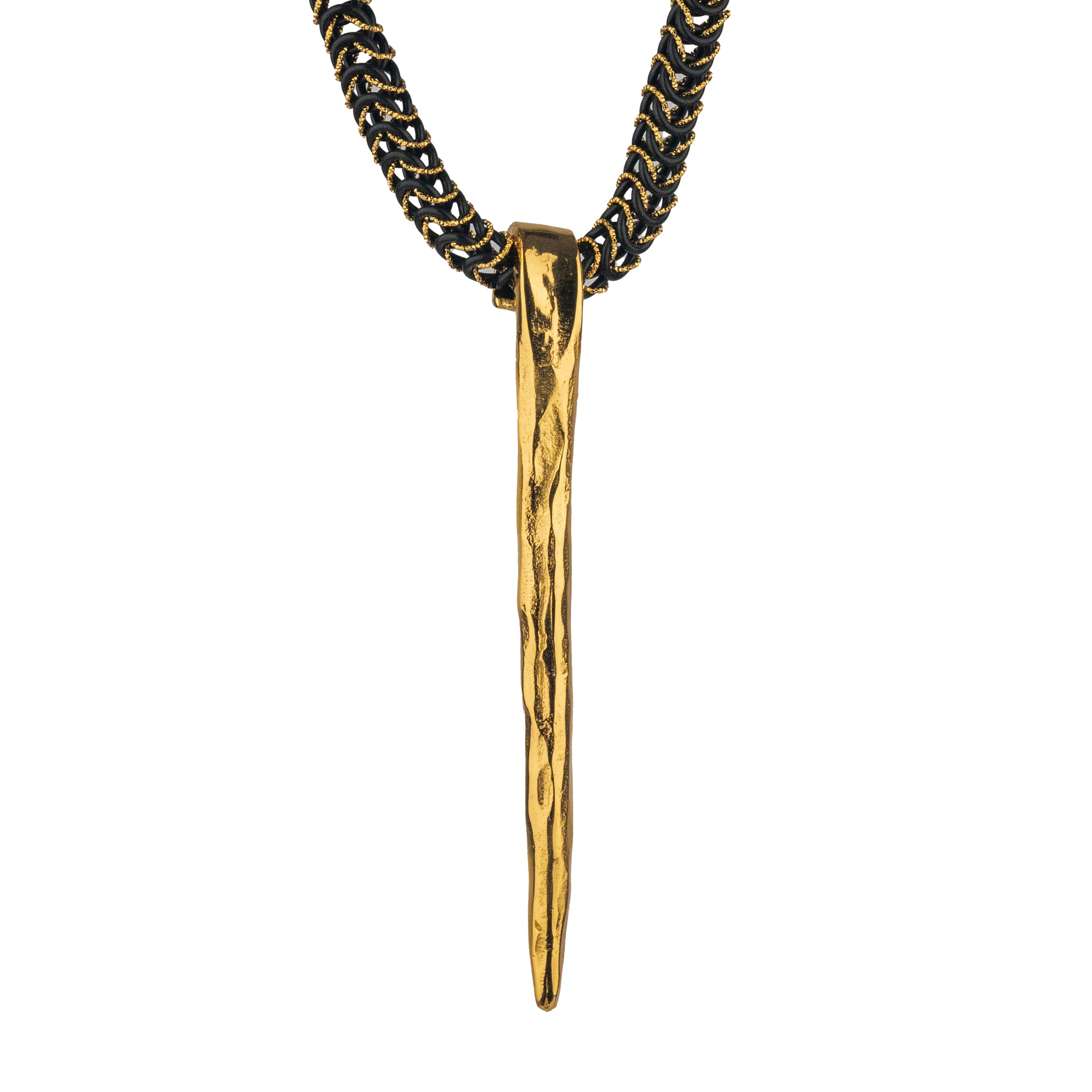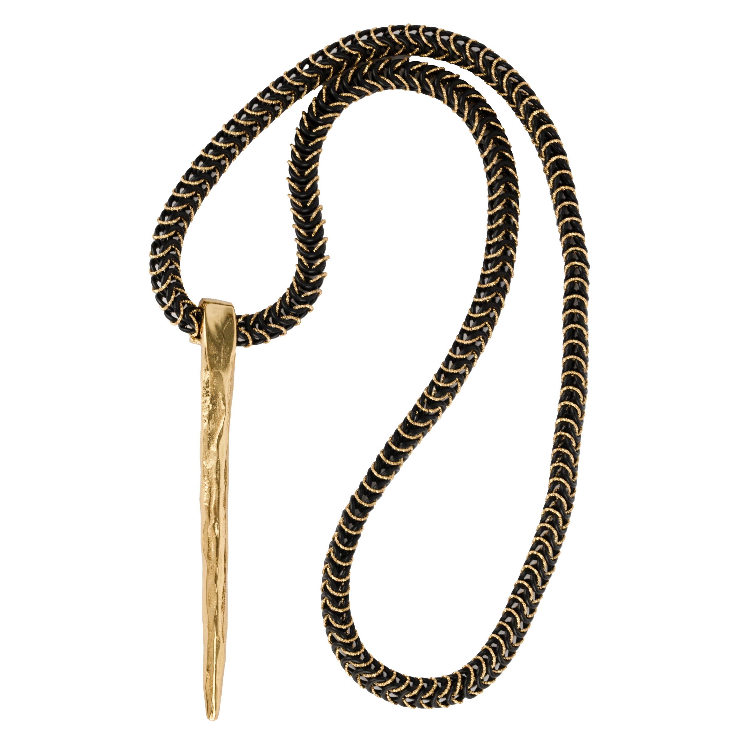 Collar de malla elástica extra largo, entrelazada a mano con anillas Diamond Cut bañadas en oro o plata, combinadas con gomas de caucho.