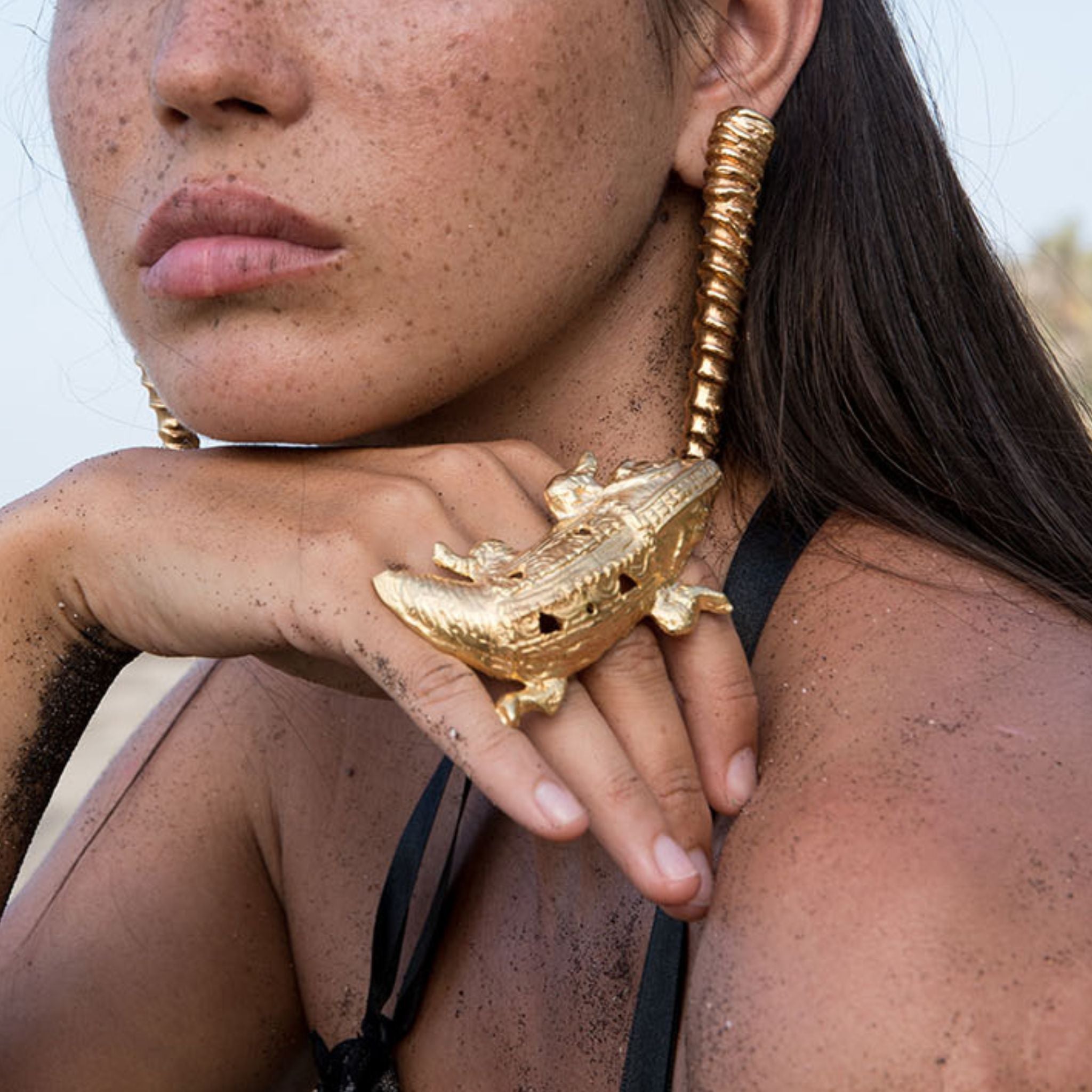 Anello lucertola realizzato a mano in Spagna in ottone placcato.