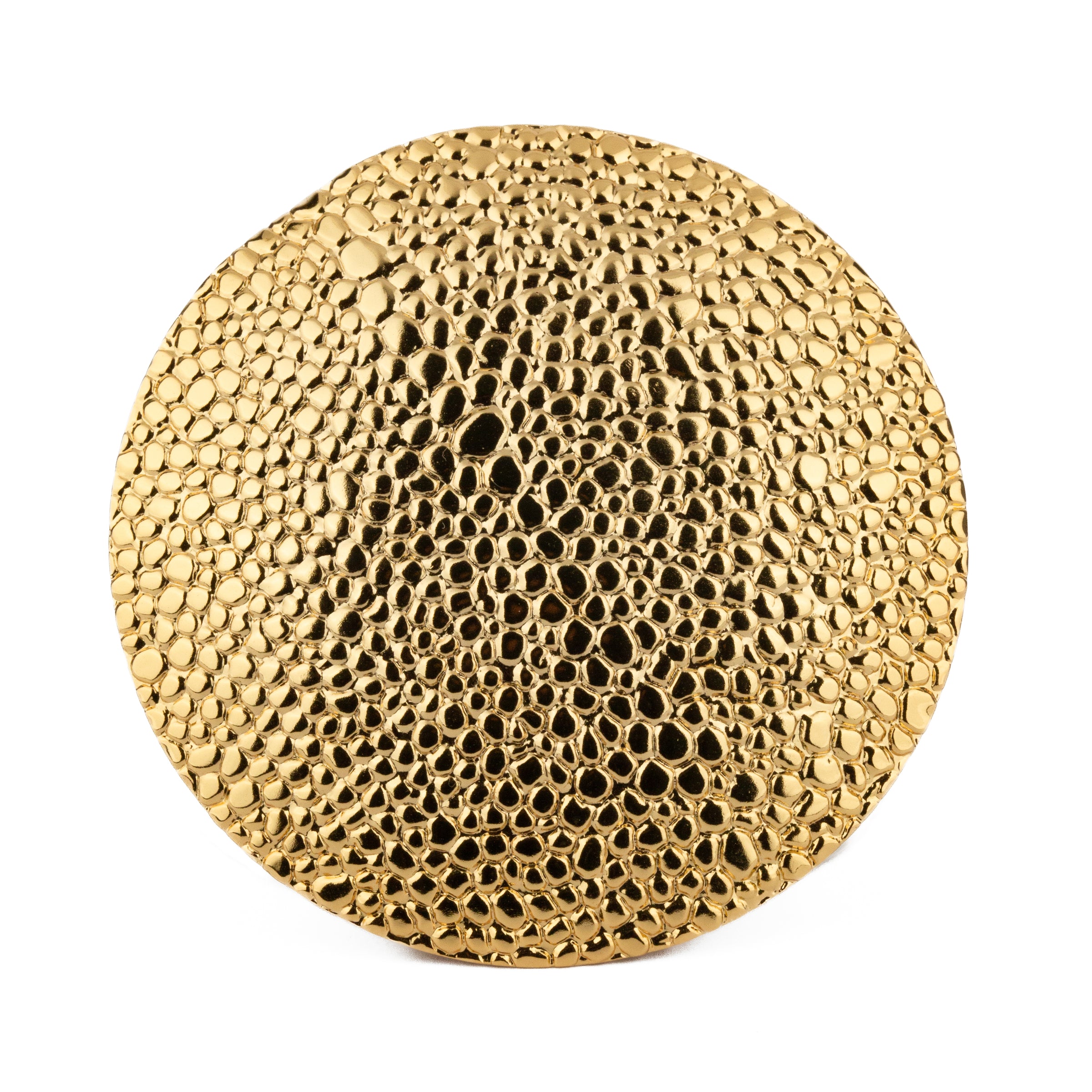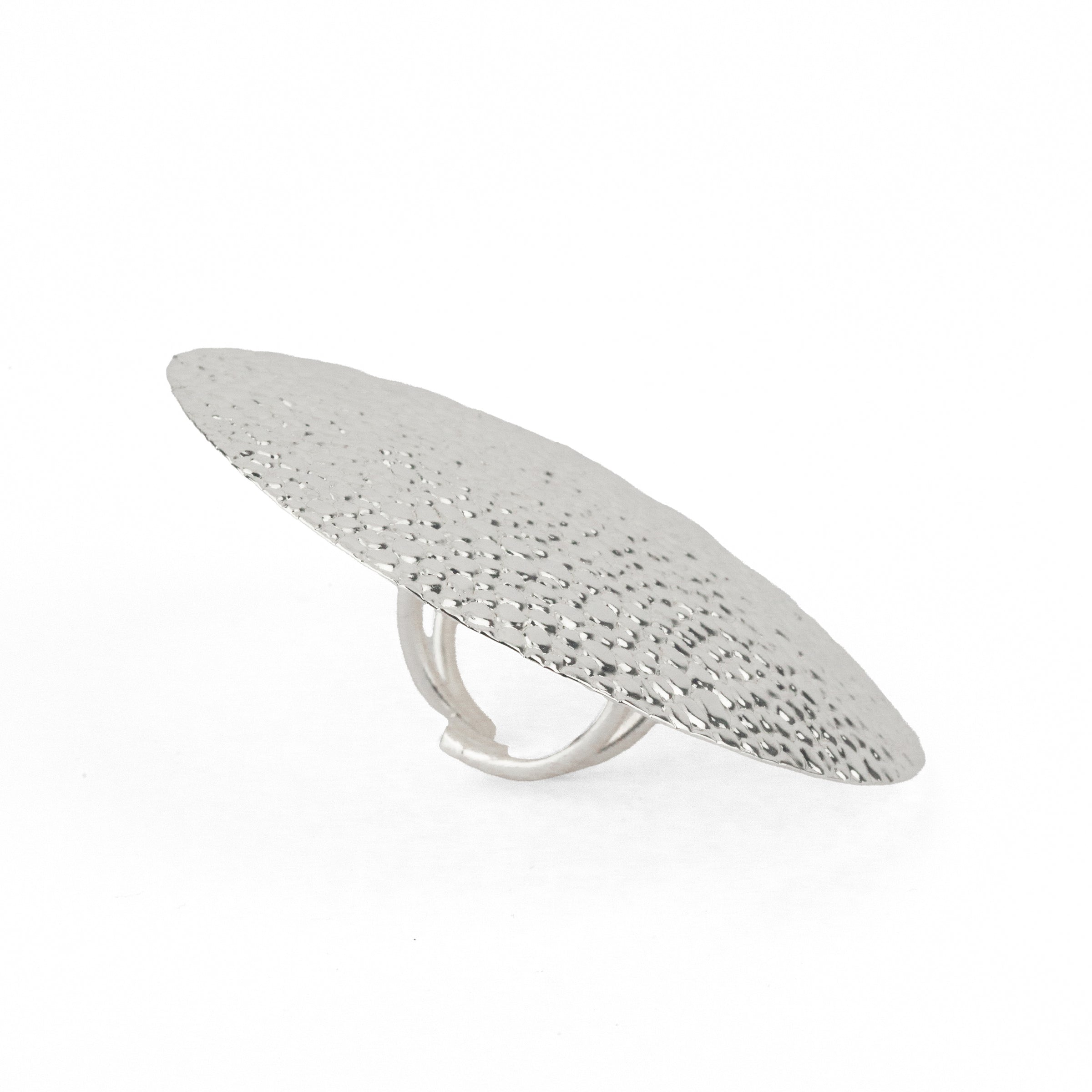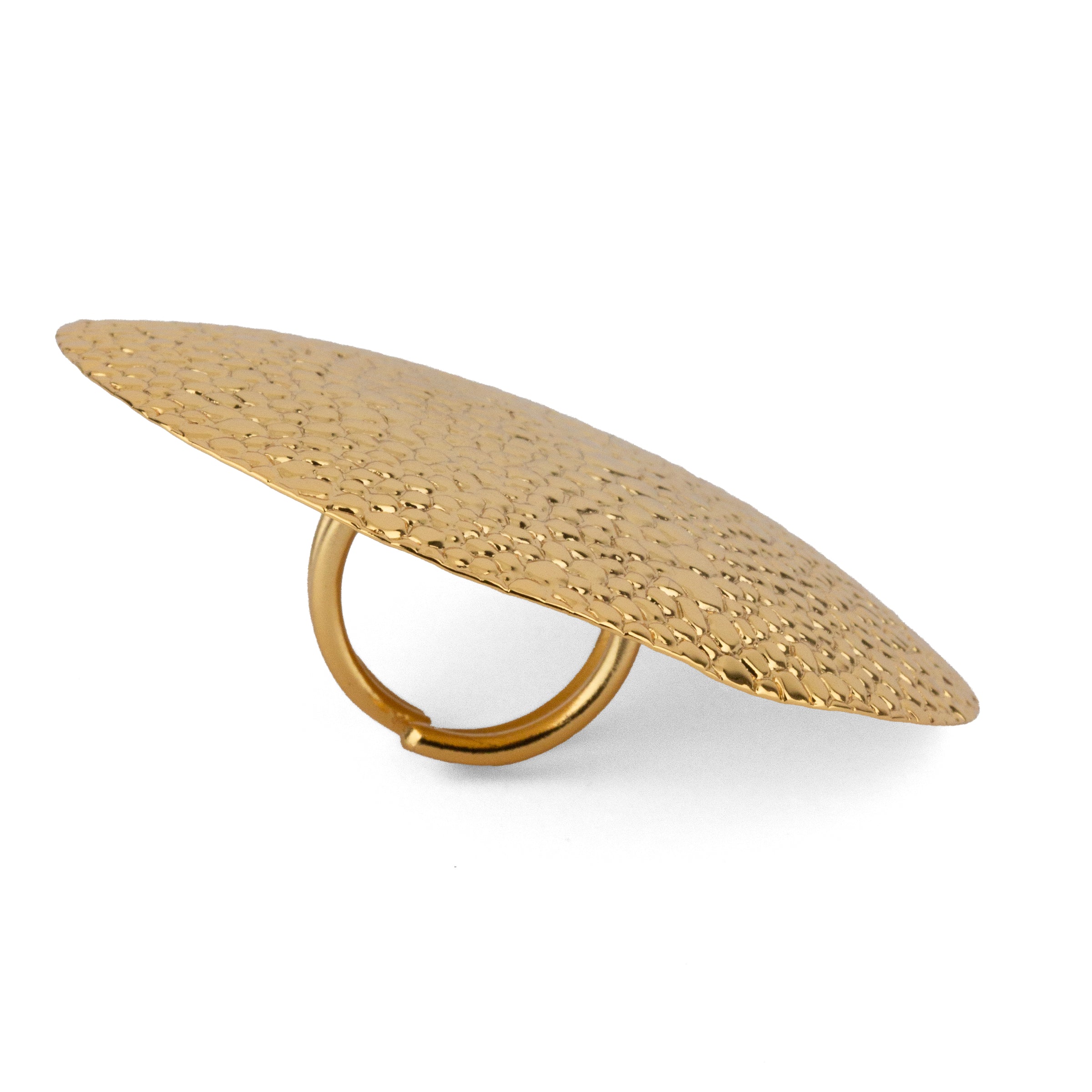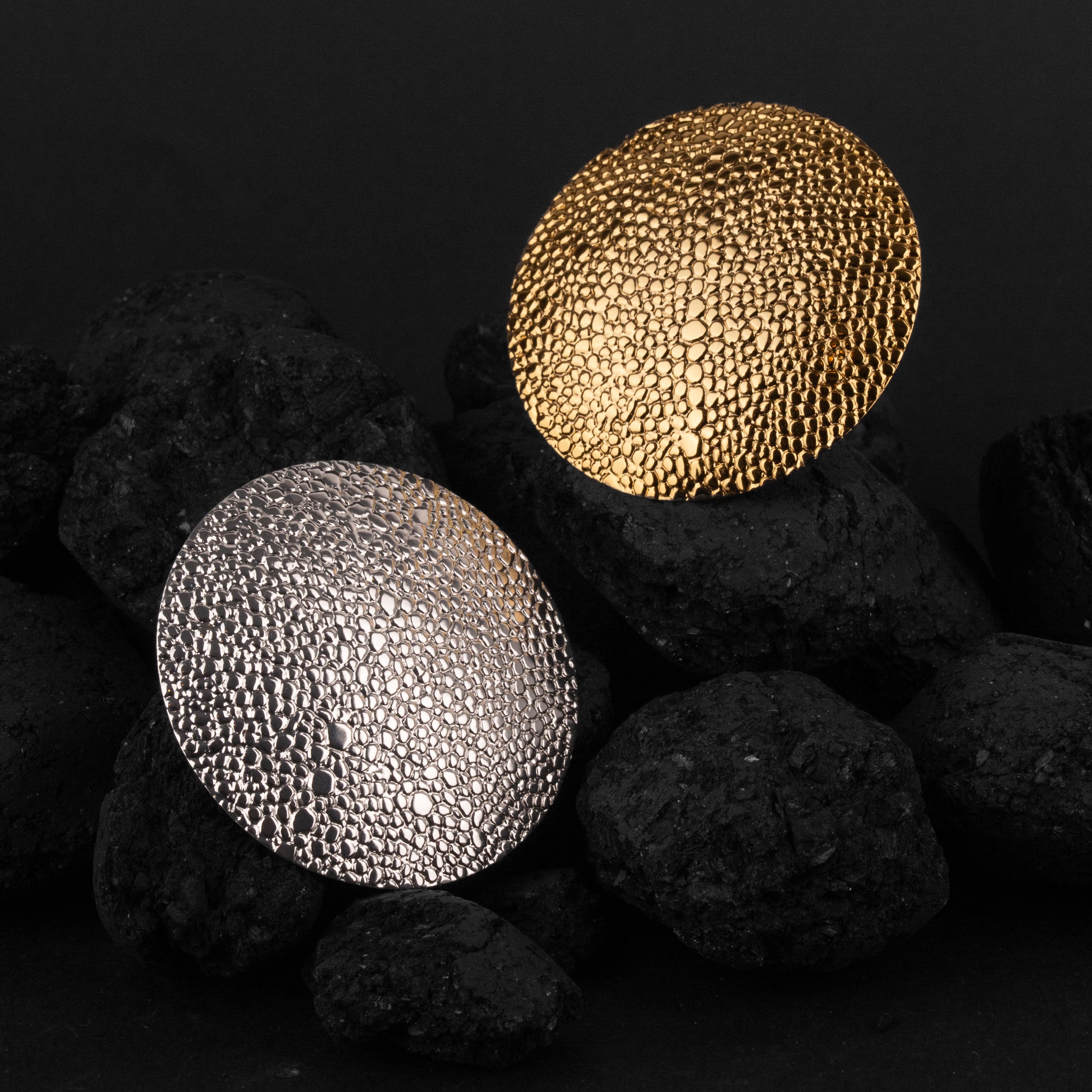 Anillo de goma con pieza bañada oro o plata (según la variante seleccionada).
