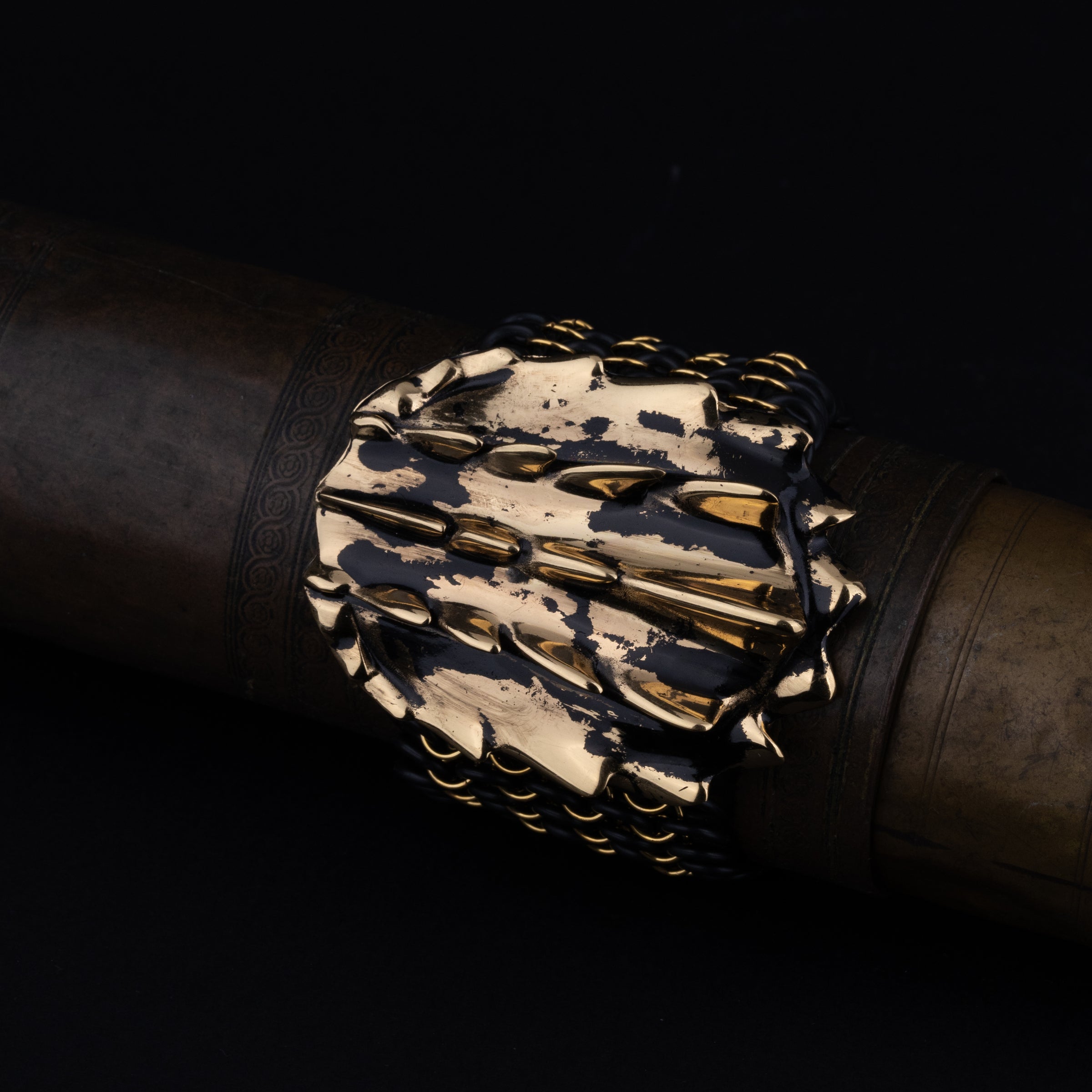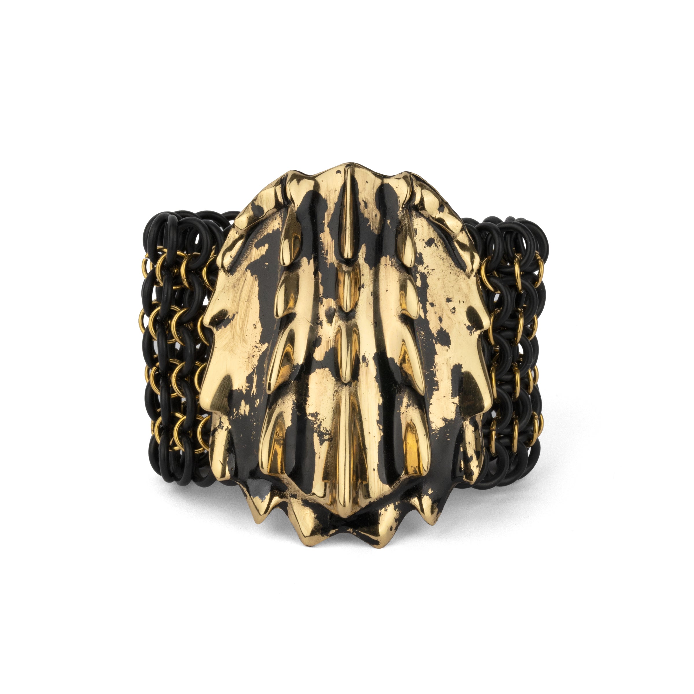 Bracciale a maglia con grande piastra a forma di tartaruga