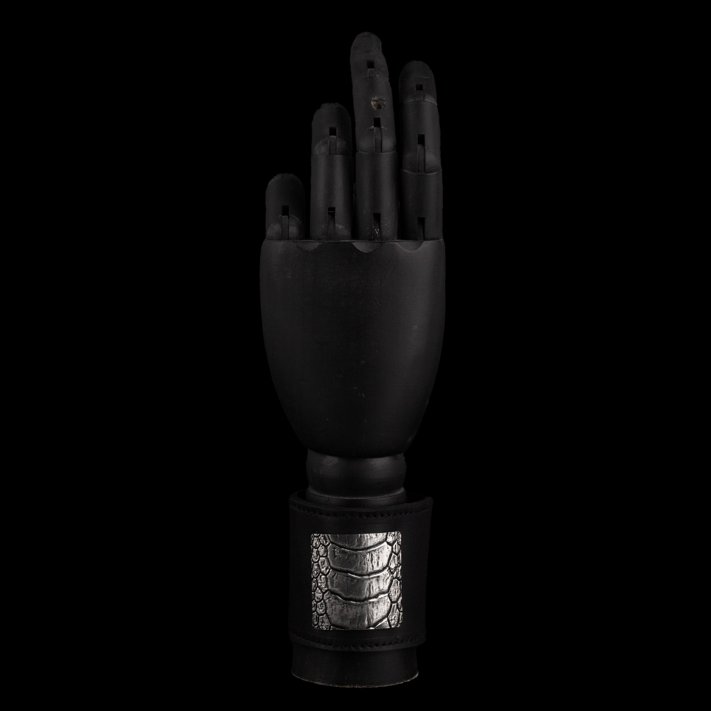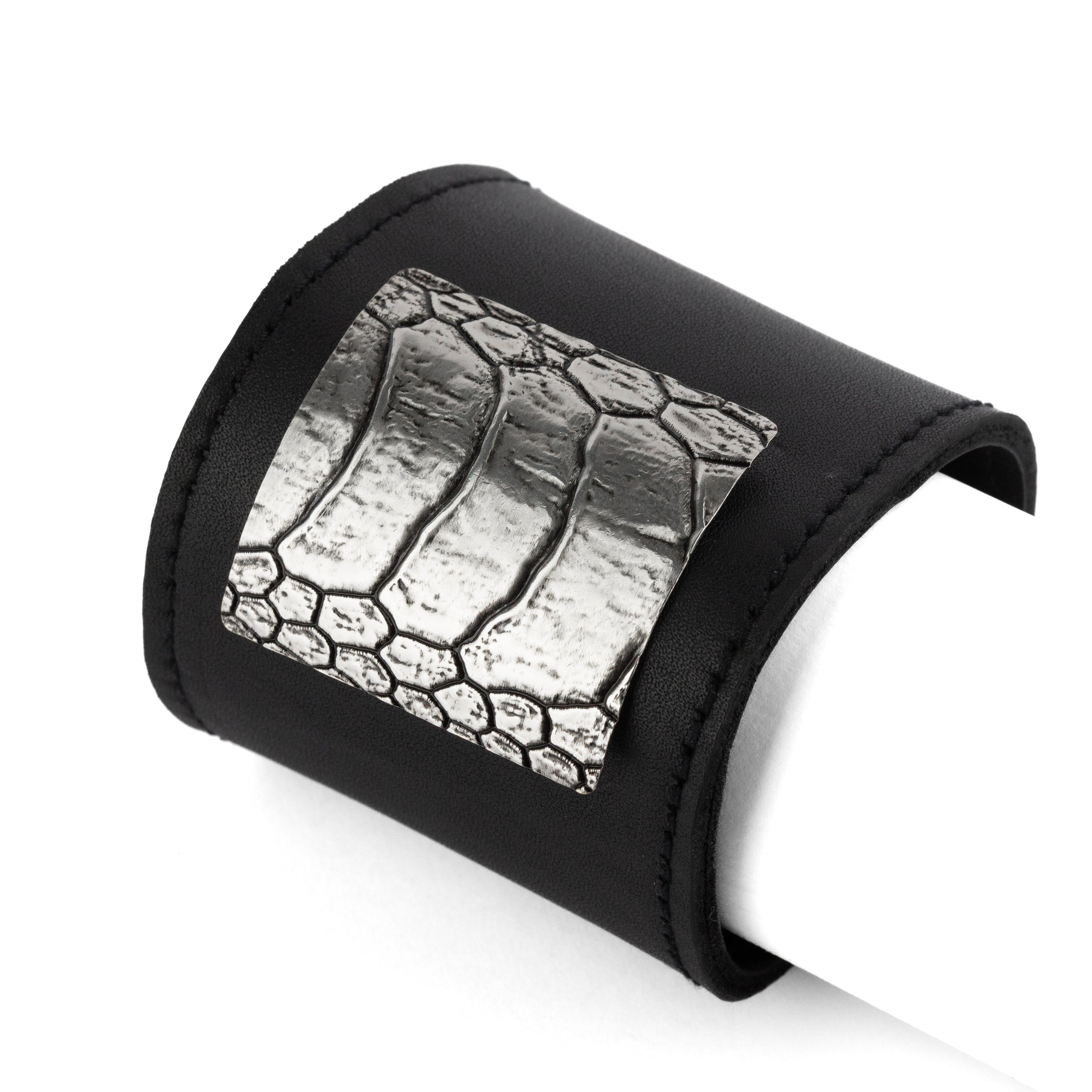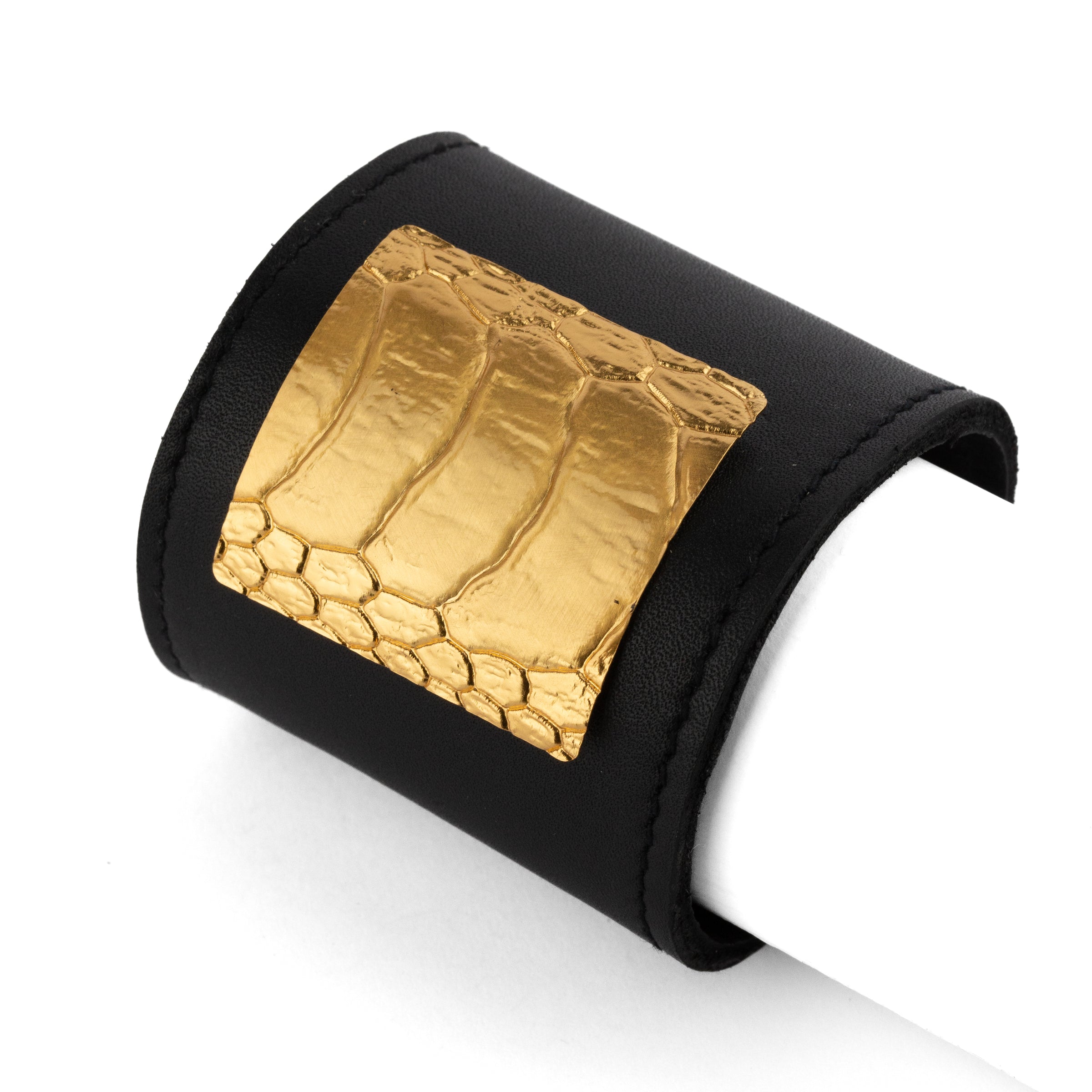 Pulsera de cuero ajustable con placa bañada oro o plata (según la variante seleccionada).
