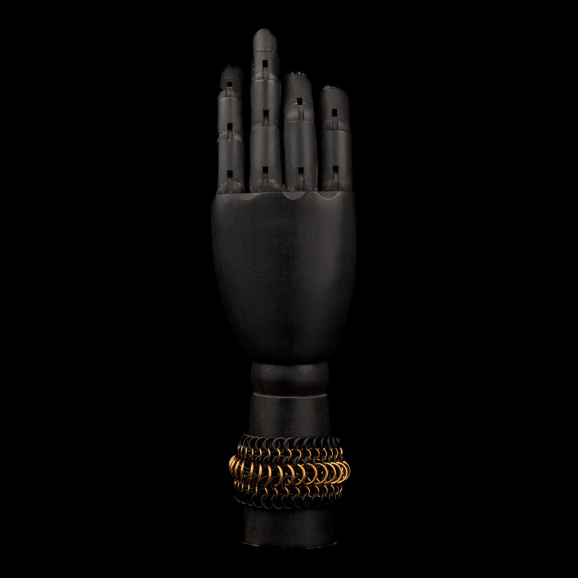 Bracciale elastico in maglia, intrecciato a mano con anelli placcati in oro o argento, abbinati a elastici.