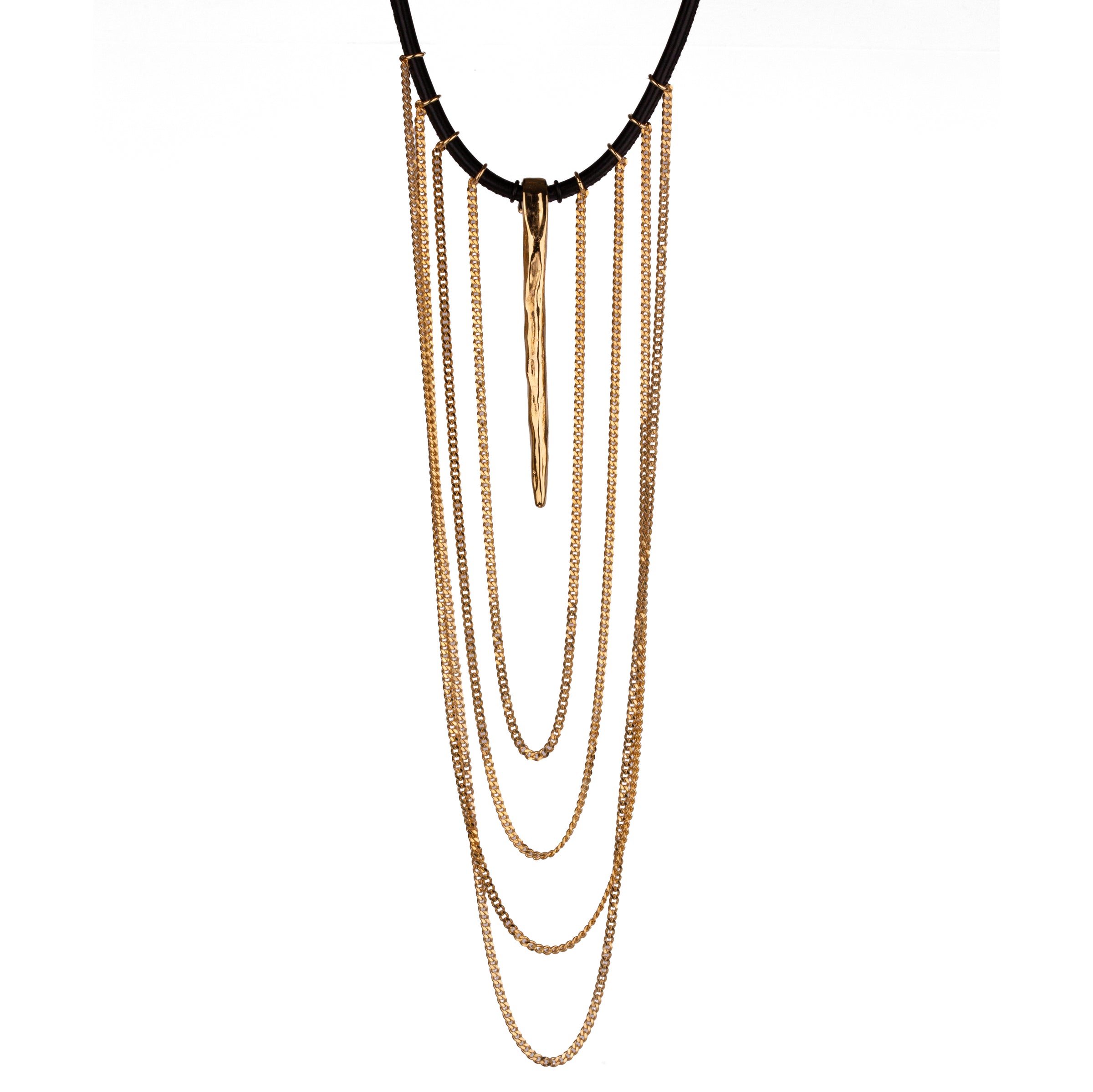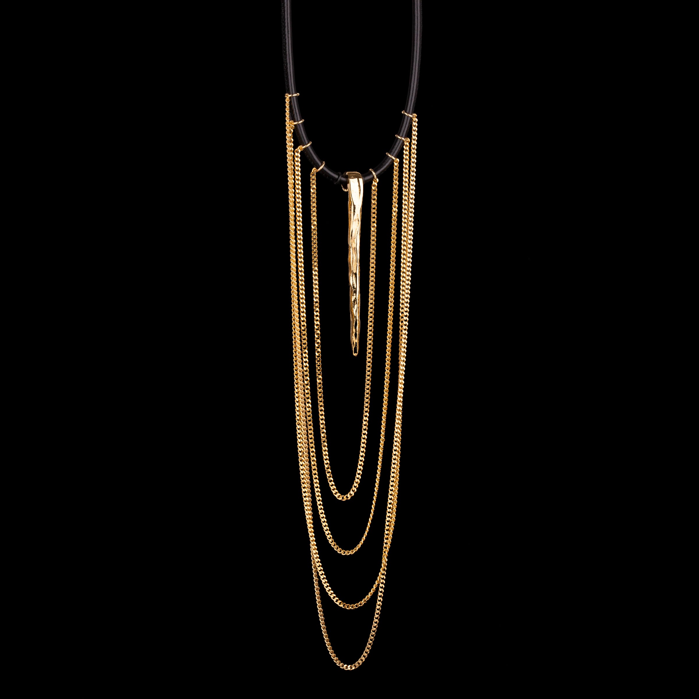 Collar de cuero con cierre magnético y colgante bañado en oro o plata (según la variante seleccionada).