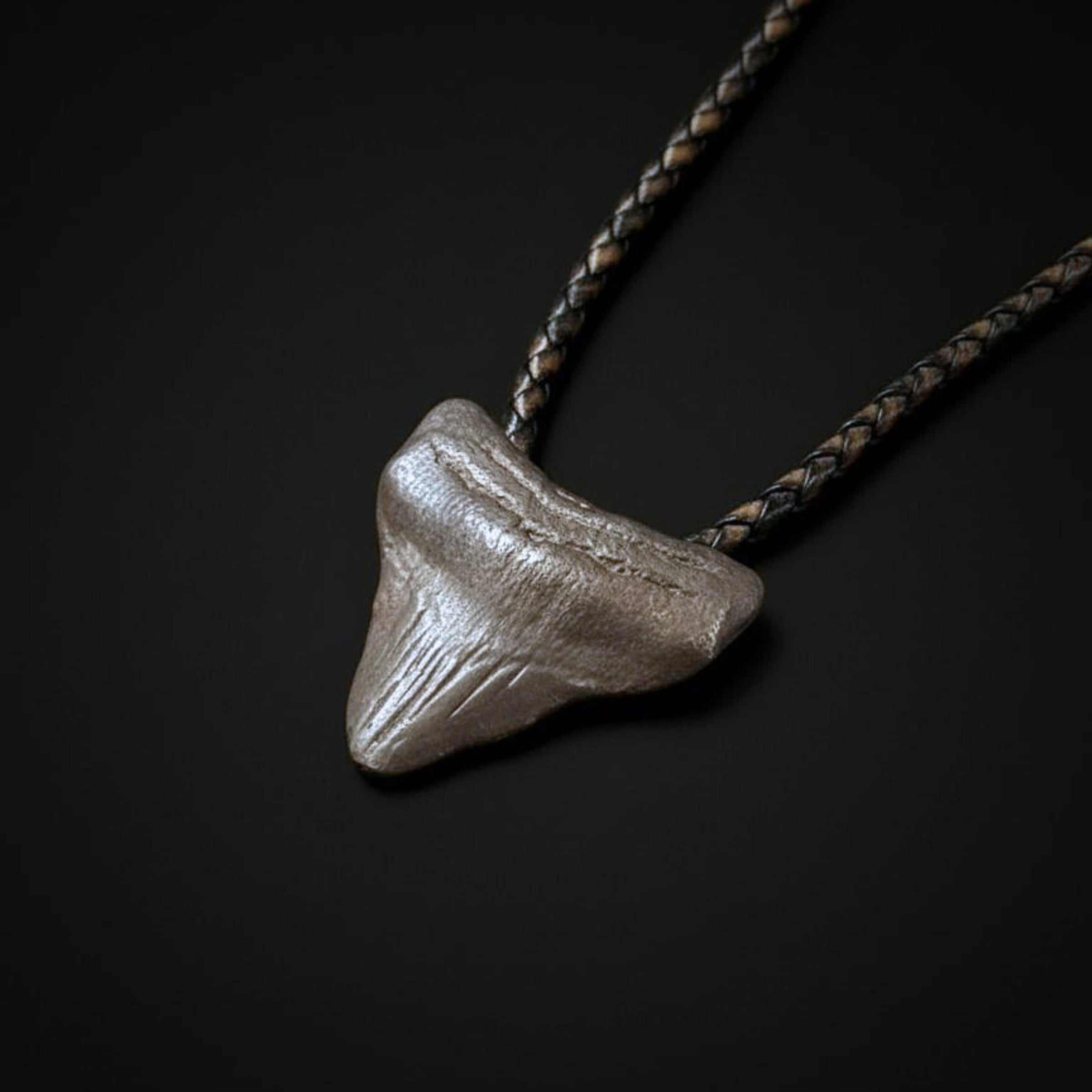 Collar Diente Plata de Ley Con Cuero