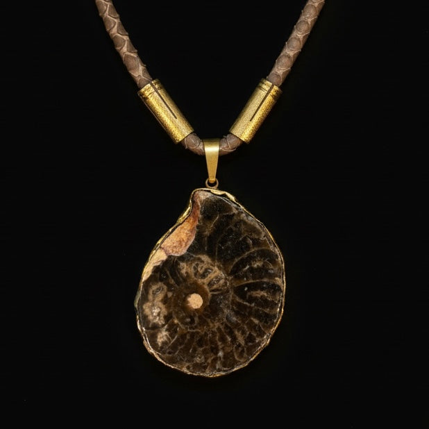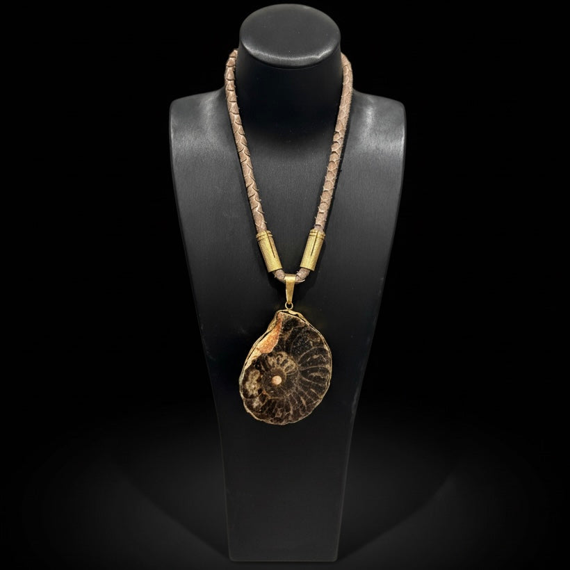 Collar de cuero con cierre magnético y colgante bañado en oro o plata (según la variante seleccionada).