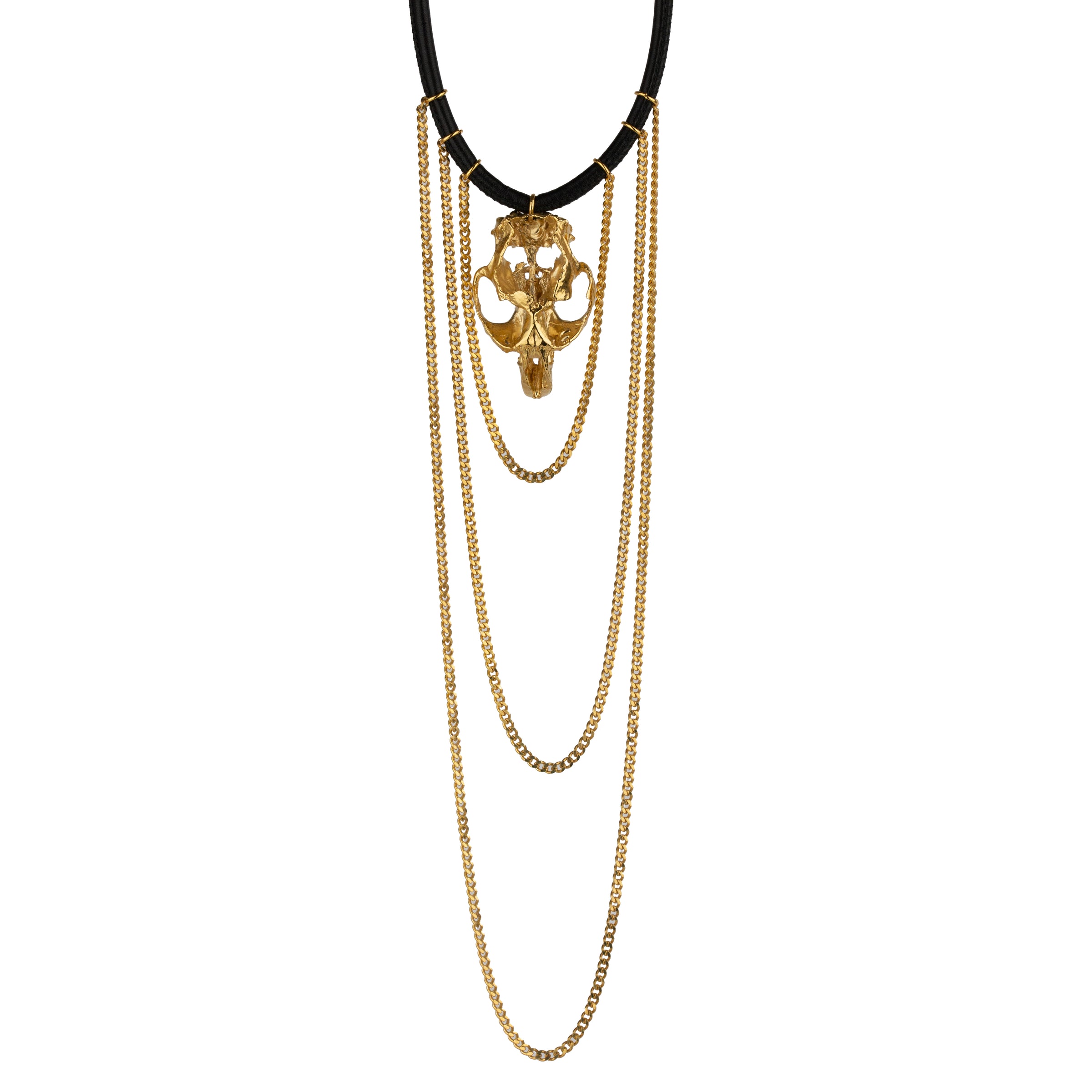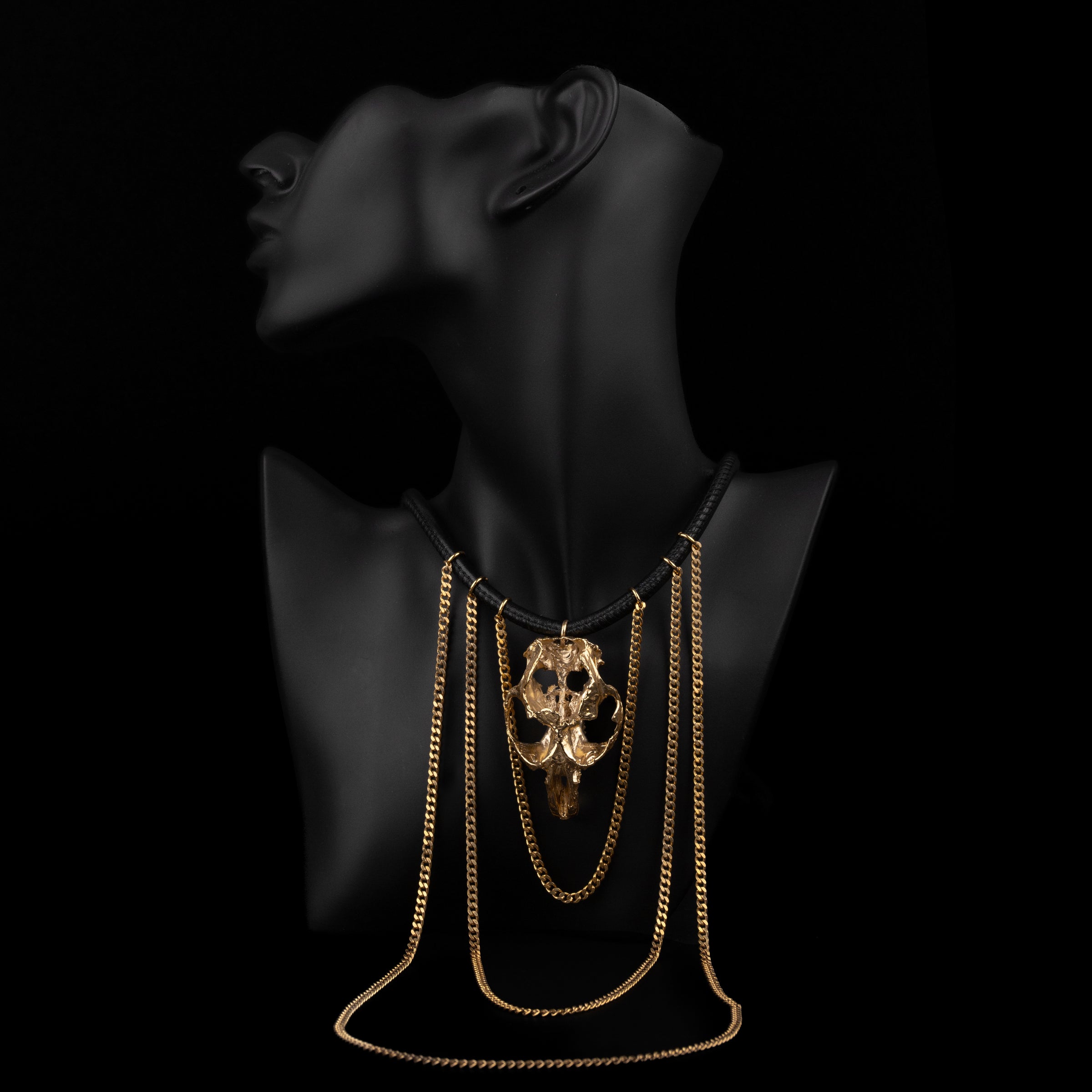 Collar de cuero con cierre magnético, cadenas y colgante bañados en oro o plata (según la variante seleccionada).