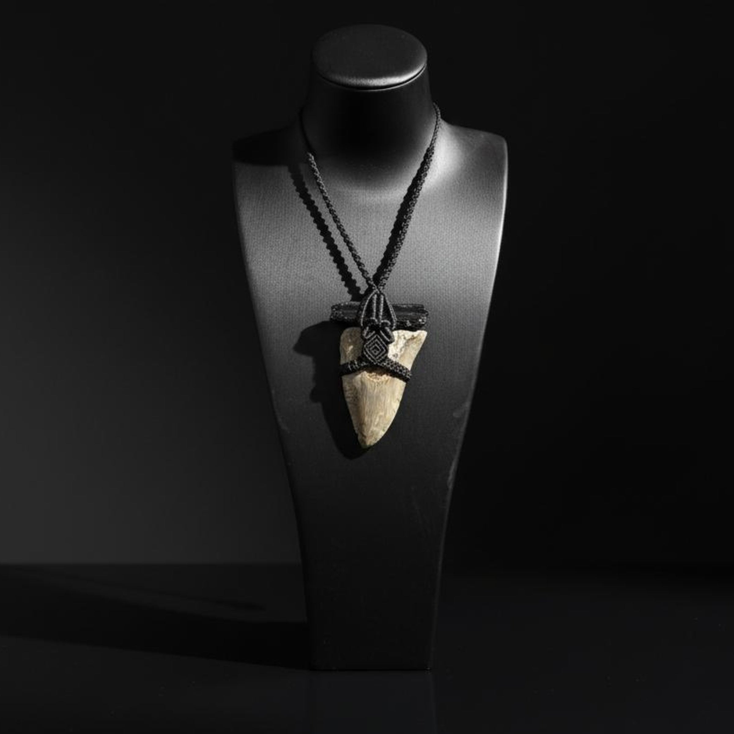 Cada pieza es única. El tamaño y el tono de la piedra y del diente pueden variar ligeramente respecto a la imagen, debido a la naturaleza artesanal y a los materiales originales utilizados.