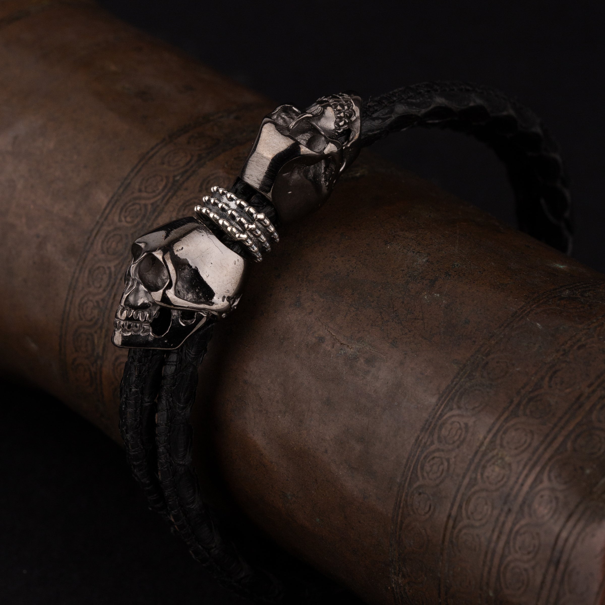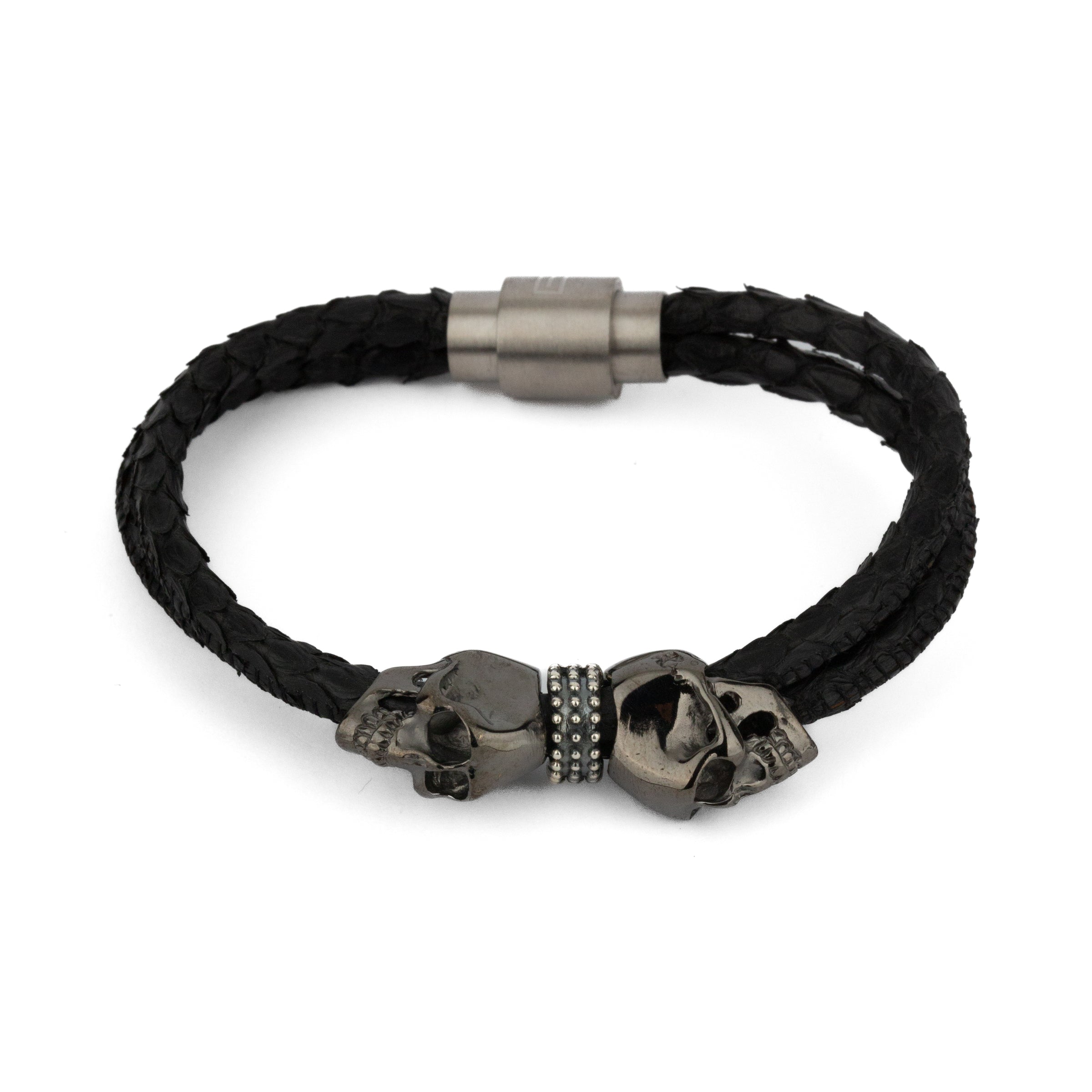 Pulsera Cuero Doble Calavera Doble Cuero Pitón con rosquilla
