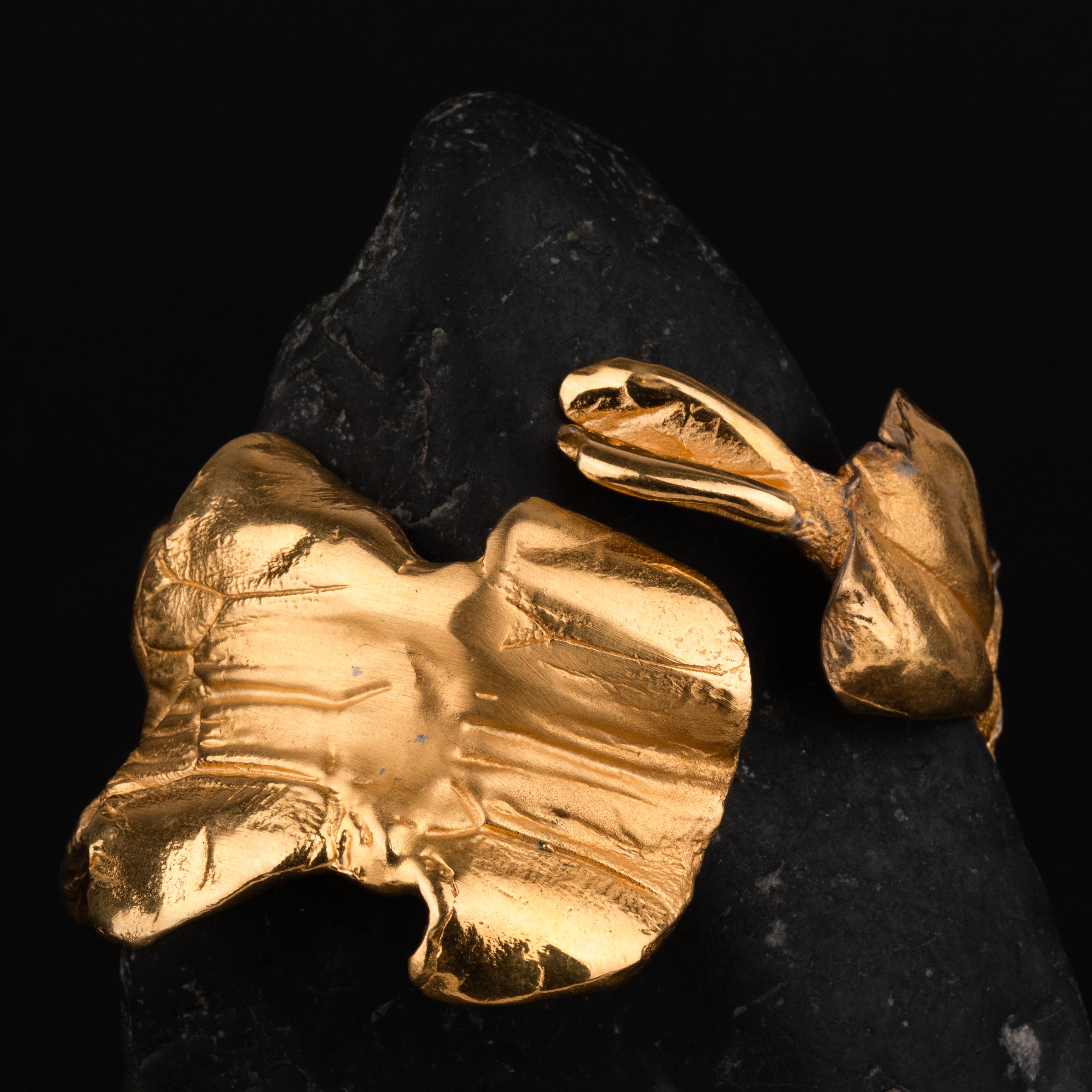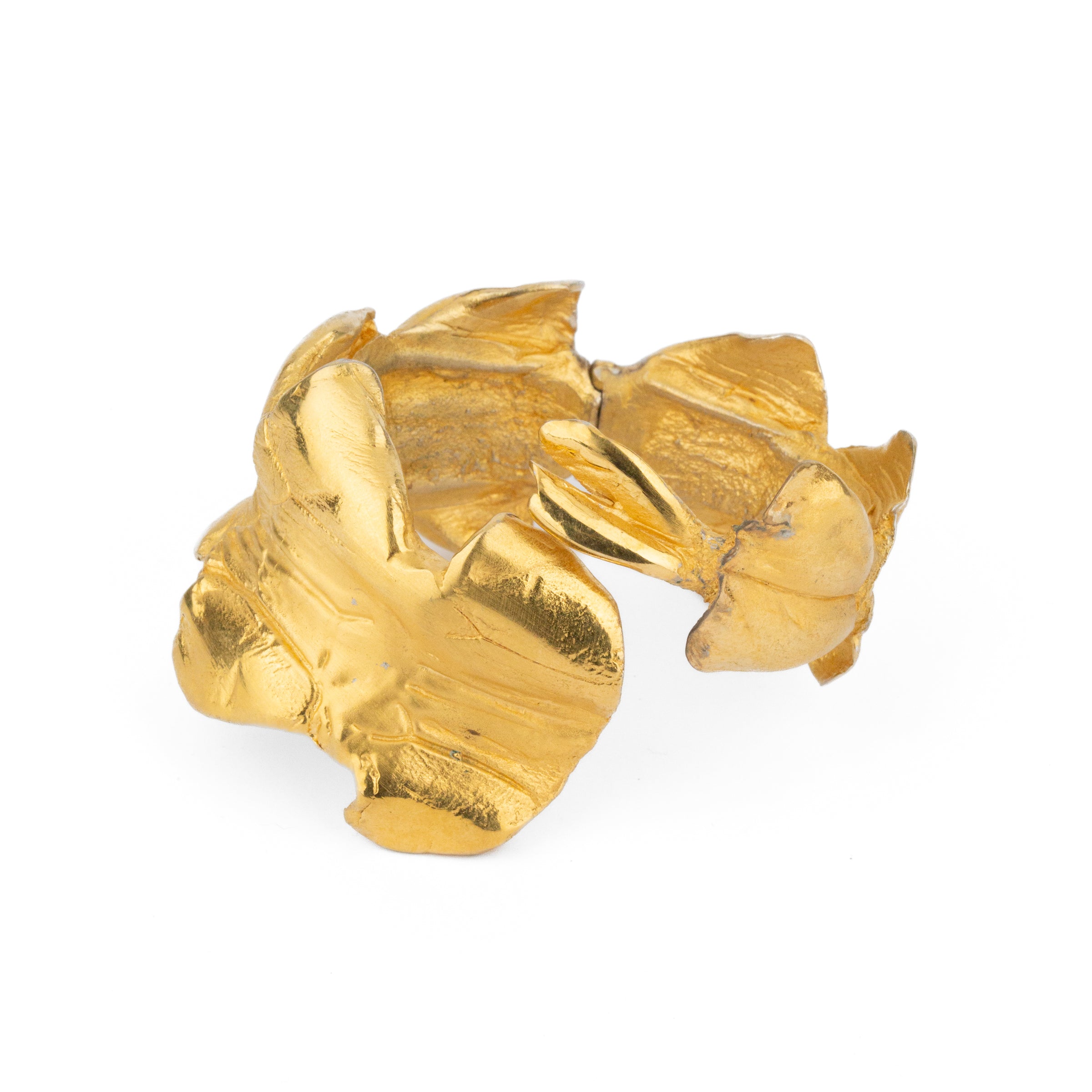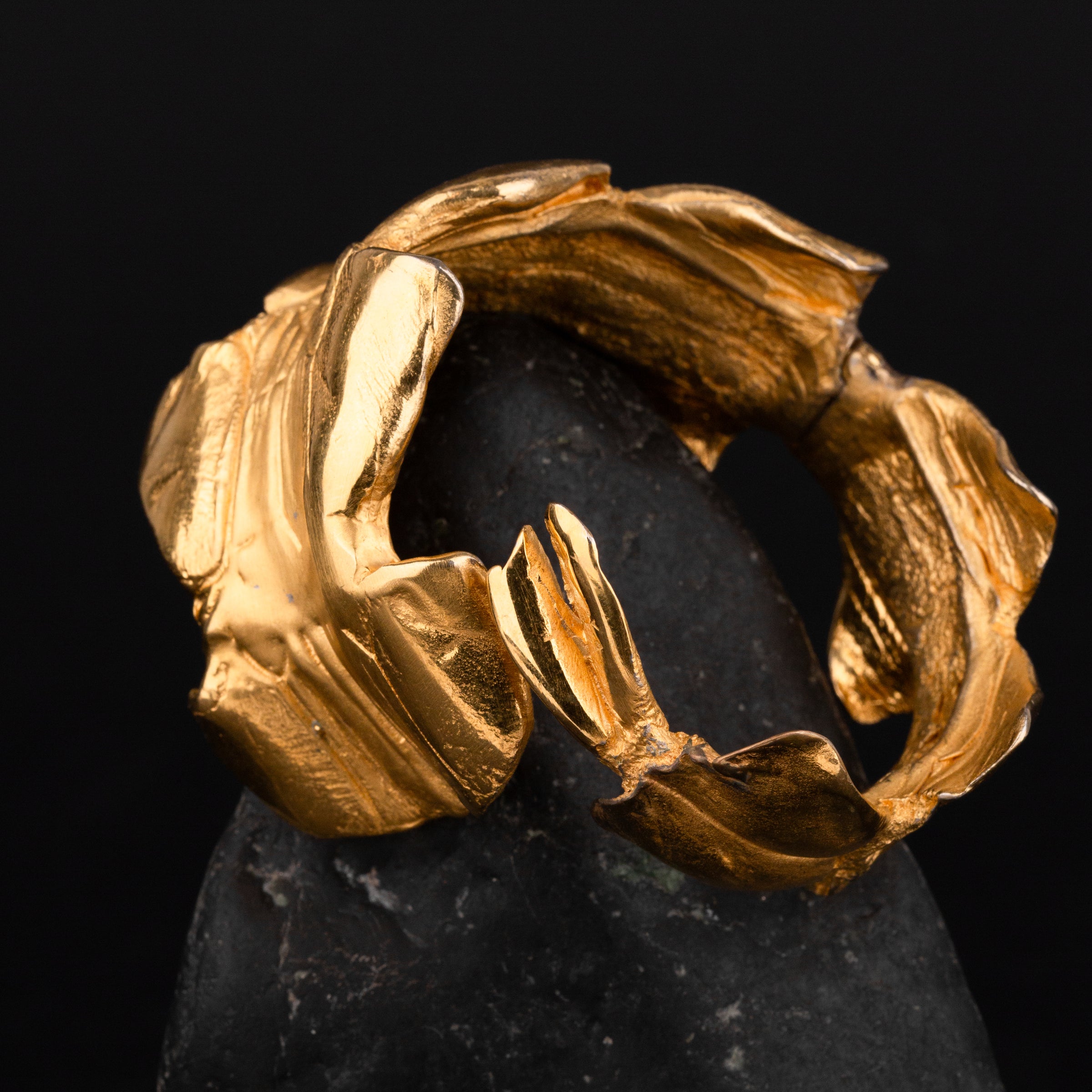 Brazalete rígido con muelle bañado en oro o plata (según la variante seleccionada).