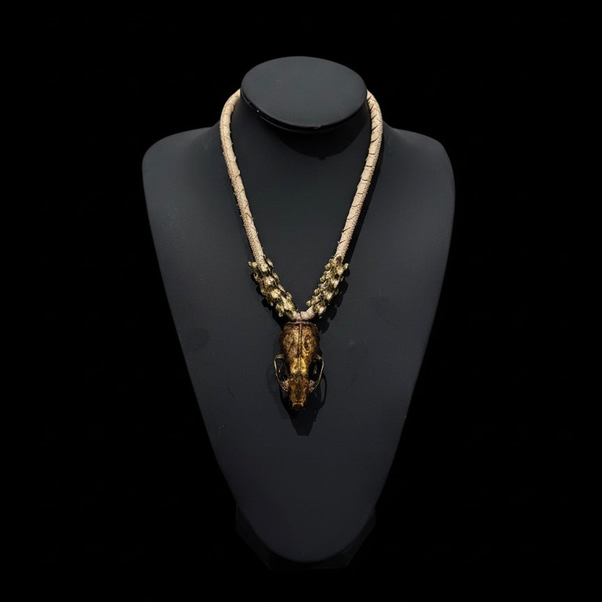 Collar de cuero con cierre magnético y colgante bañado en oro o plata (según la variante seleccionada).